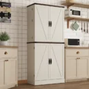 Keep your kitchen tidy, clean and organized with this farmhouse kitchen pantry. Magnetic doors are used to prevent cockroach, ants or other insects coming in. With 2 adjustable shelves, 3 pull-push storage racks and 6 door-sided shelves, this multi-functional cabinet provides ample space to store food, books, small appliances, and kitchen supplies. Buy it to meet your storage and display needs, no matter you need a kitchen pantry, bookcase, linen cabinet or other storage cabinets.