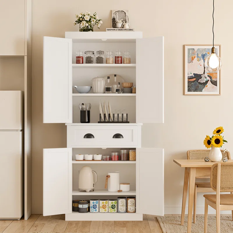 - 【Kitchen Pantry Storage Cabinets】Super large food storage room: 2 double door cabinets and 6 spacious storage layers, making it an ideal place to store beverages, canned food, dishes, and small appliances.